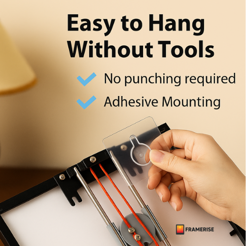 Nei! Rammen er lett og enkel å montere med det medfølgende klebesystemet eller den integrerte veggopphenget (avhengig av modell). Ingen verktøy nødvendig.